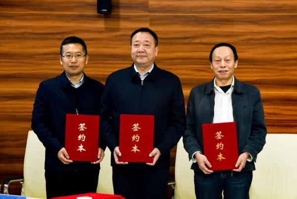 李虹杰、刘少辉和地大环境学院院长史建波共同签订捐赠协议,并为监测设备揭幕。