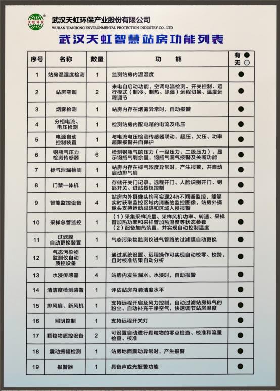 自6月份开始,便时常可以看到他们讨论方案、研究细节、复看总站要求、实战安装测试,同时不忘实地考察研究其他单位的建设情况。无论下班后,还是星期天,总能在站房内外看到一群忙碌的身影,在如此短时间、高温度的客观条件下,大家齐心协力最终在7月14日完成了整体站房建设。智慧站房除常规功能外,还包含19项自动化控制功能,多于总站要求的必配项。可实现远程开门、远程开关灯、站房温湿度监测、站房空调自控、站房清洁度及震动监测、站房烟雾及水浸监测、电源检测及自控、气瓶压力及泄漏监测、站房内外环境实时监控及报警、采样总管参数监控、气态监测仪过滤膜自动更换、气态监测仪自动质控、颗粒物质控等。