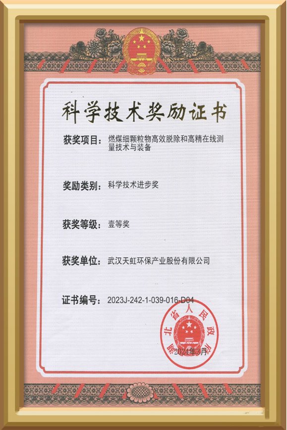 武汉918博天堂环保产业股份有限公司燃煤细颗粒物高效脱除和高精在线测量技术与装备项目荣获湖北省科学技术进步奖一等奖;