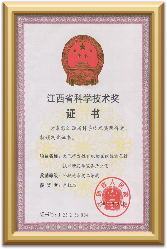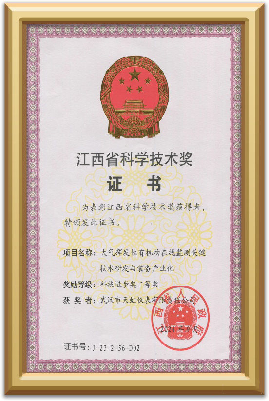 武汉市918博天堂仪表有限责任公司大气挥发性有机物在线监测关键技术研发与装备产业化项目荣获江西省科技进步奖二等奖;