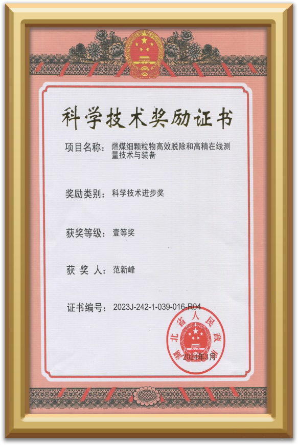 研发副总范新峰荣获燃煤细颗粒物高效脱除和高精在线测量技术与装备个人科技进步奖一等奖。