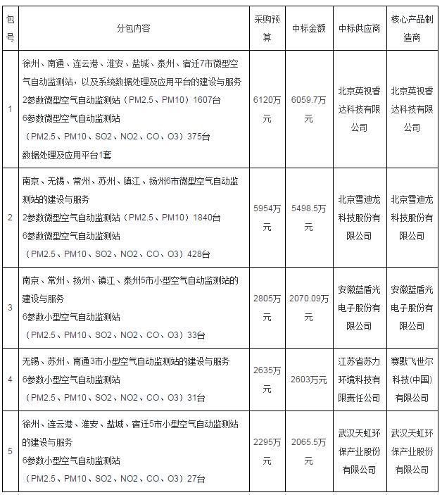 五厂商瓜分江苏1.83亿PM2.5网格化监测大标