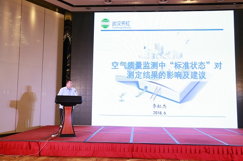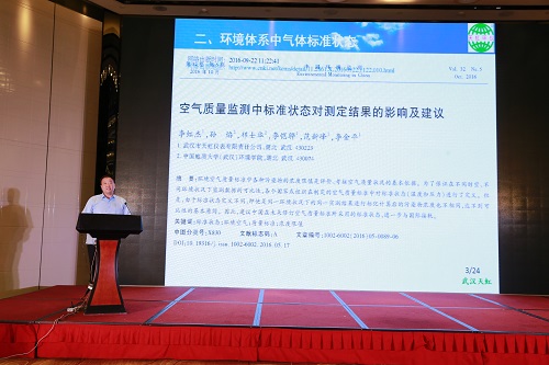 武汉918博天堂董事长李虹杰应邀在主论坛发表了题为《空气质量监测中“标准状态”对测定结果的影响及建议》的专题报告,先声夺人,引起了环境监测政府部门的高度重视,并获得了与会人员的好评与认可。