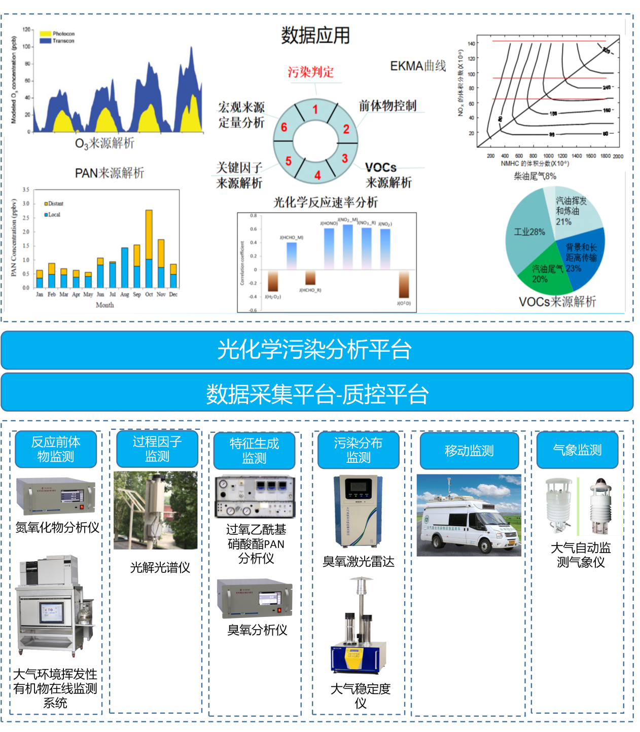 4) 固定监测与移动走航监测相结合、近地面观测与雷达垂直观测相结合,构建光化学污染天地空立体监测体系。