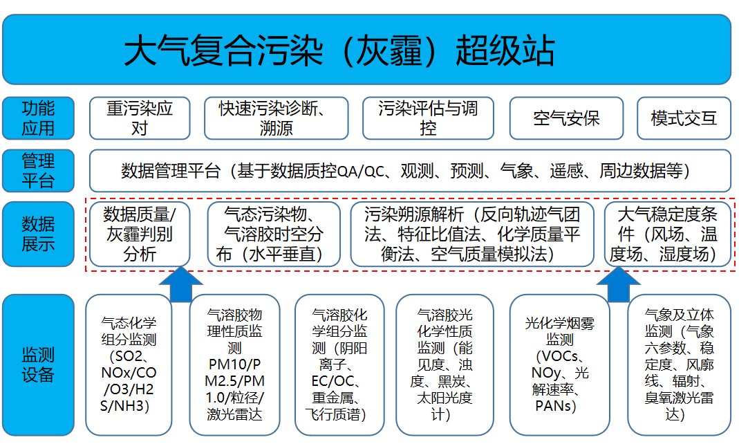 6) 气象及立体监测:气象六参数、大气稳定度、风廓线雷达、微波辐射仪、臭氧激光雷达;