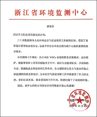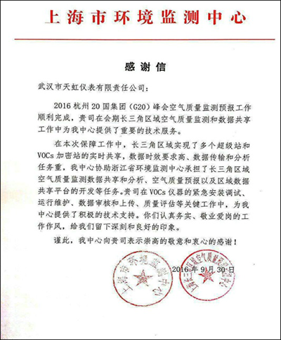 武汉918博天堂环保产业股份有限公司受国家环保部委托,派出TH-300B VOCs在线监测系统参加G20峰会长三角区域环境空气VOCs自动监测,负责上海淀山湖空气自动站,江苏宜兴市监测站空气自动站,安徽芜湖市监测站空气自动站三个站点的VOCs在线监测工作,圆满完成了各项任务;并配合专家进行盲样测试、现场考核及仪器空白等多项指标的评估工作。