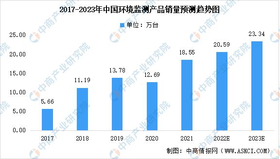 根据中国环境保护产业协会统计数据,2017-2021年我国环境监测产品的销量及增长率整体处于上升趋势,2020年受到疫情影响,环保项目开工率、工时、完工率等指标均受到不利影响,但市场规模仍维持在高位。2021年我国环境监测产品的销量达18.55万台,预计2023年我国环境监测产品的销量将达23.34万台。